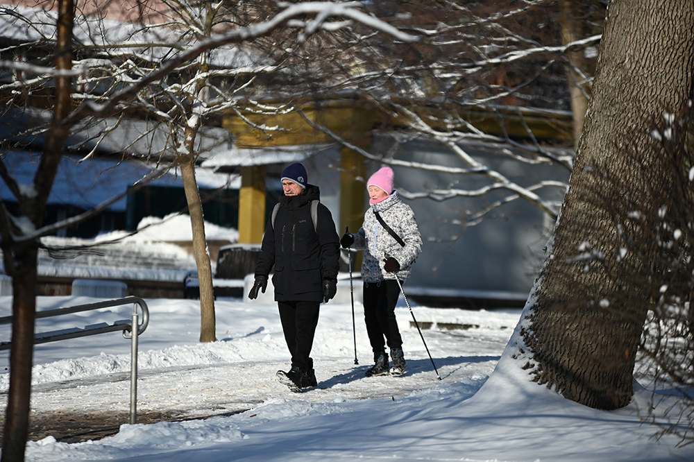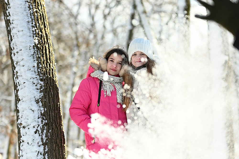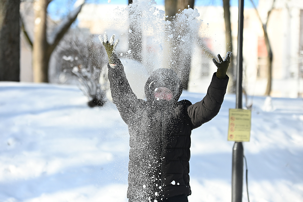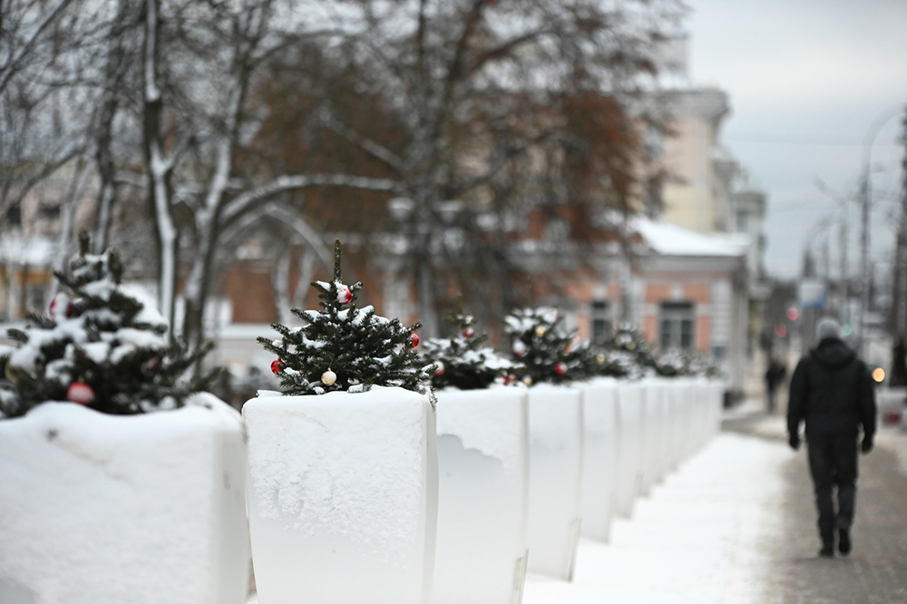 Горожане спешат по своим делам и неспешно прогуливаются, дворники заняты делом, а дети просто веселятся – зиме, солнечному дню, каникулам и приближающемуся вместе с Новым годом волшебству. Ну а собачки в пуховиках просто милые.