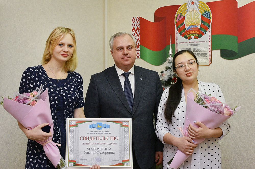 В православный Сочельник председатель Гомельского горисполкома Владимир Привалов тепло поздравил маму новорождённой Александру Марочкину с рождением дочери, вручил ей свидетельство «Первого гомельчанина года» и ценные подарки.