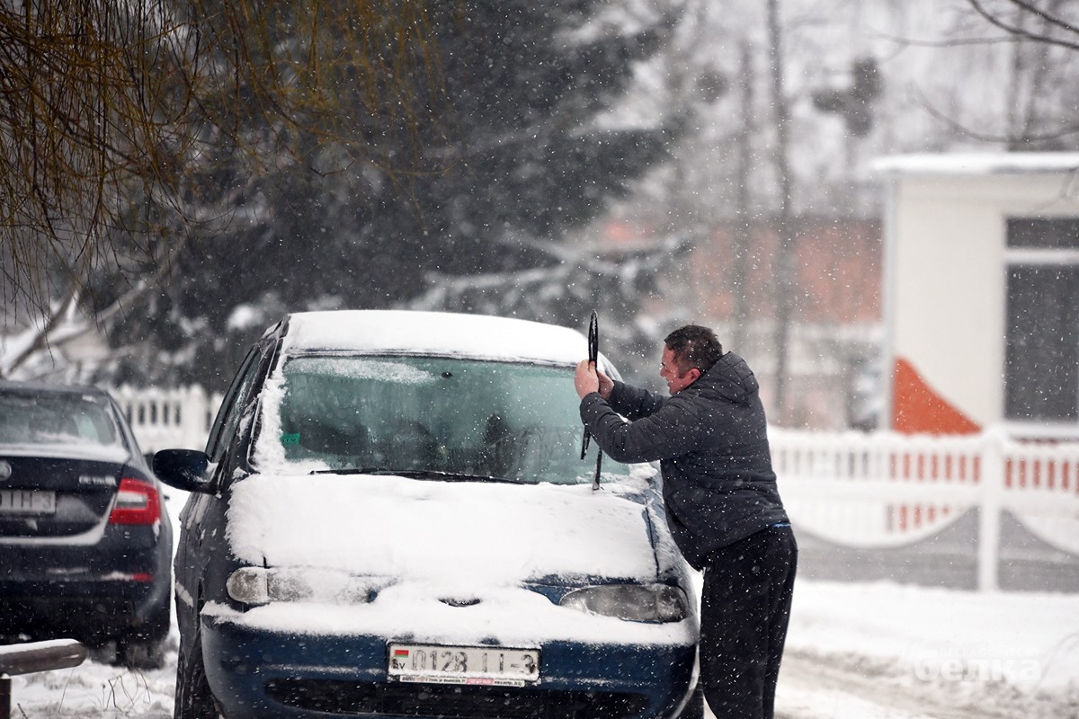 Тем временем, во дворе на улице Мазурова соседи помогают друг другу заряжать аккумулятор: с приходом в город снега и мороза – это больная тема автомобилистов, как и уборка парковочного места. Многие автовладельцы в курсе, что именно они несут ответственность за уборку снега в радиусе метра от своего автомобиля. Нарушение правил грозит штрафом до 25 базовых величин.