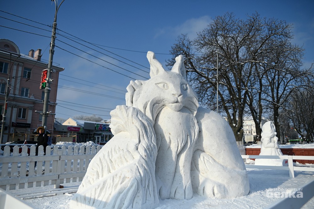 Центральная фигура снежной экспозиции под открытым небом – символ города Гомеля – рысь.
