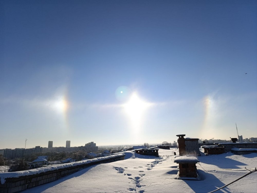 Солнечное гало наблюдали жители областного центра 1 февраля в небе над городом и поделились своими фото с редакцией «Белки».