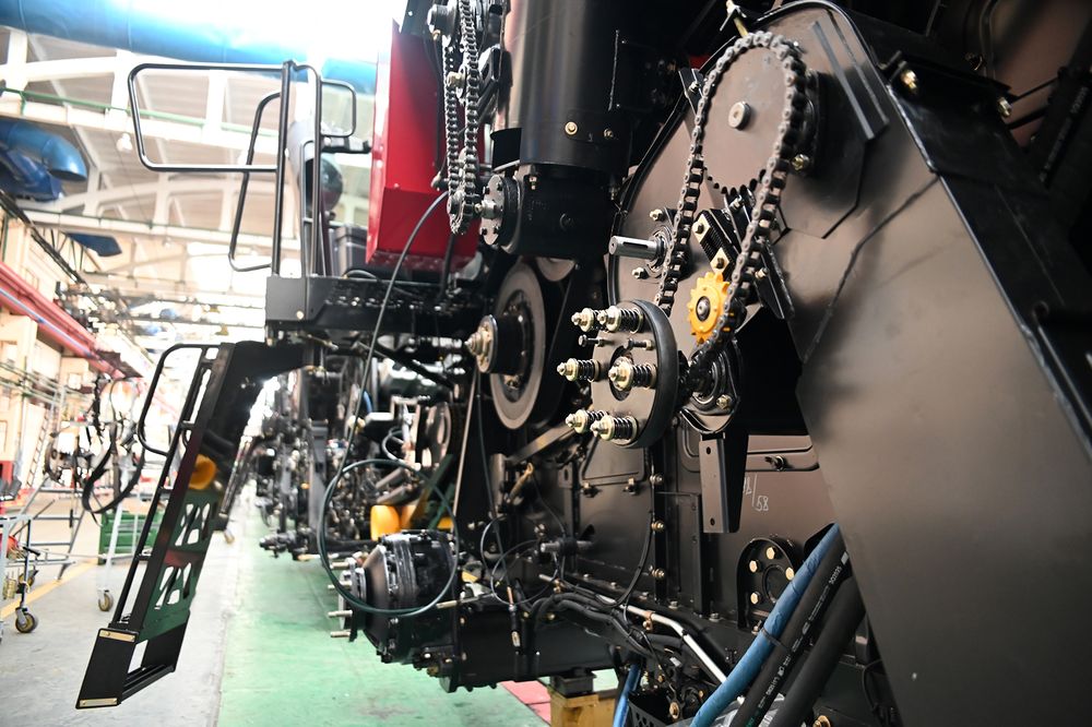 — Из всей линейки машин, которые собираются у нас на конвейере, GS12А1 самый технологичный и надёжный. За минувшие годы благодаря нашим конструкторам он отработан буквально до мелочей. Каждый слесарь знает его, как свои пять пальцев. Технологическая цепочка сборки комбайна состоит из 28 позиций: сначала собираем шасси, затем постепенно навешиваем узлы и агрегаты, поступающие из других цехов. На выходе получаем полностью готовую, что называется, «на ходу» машину.