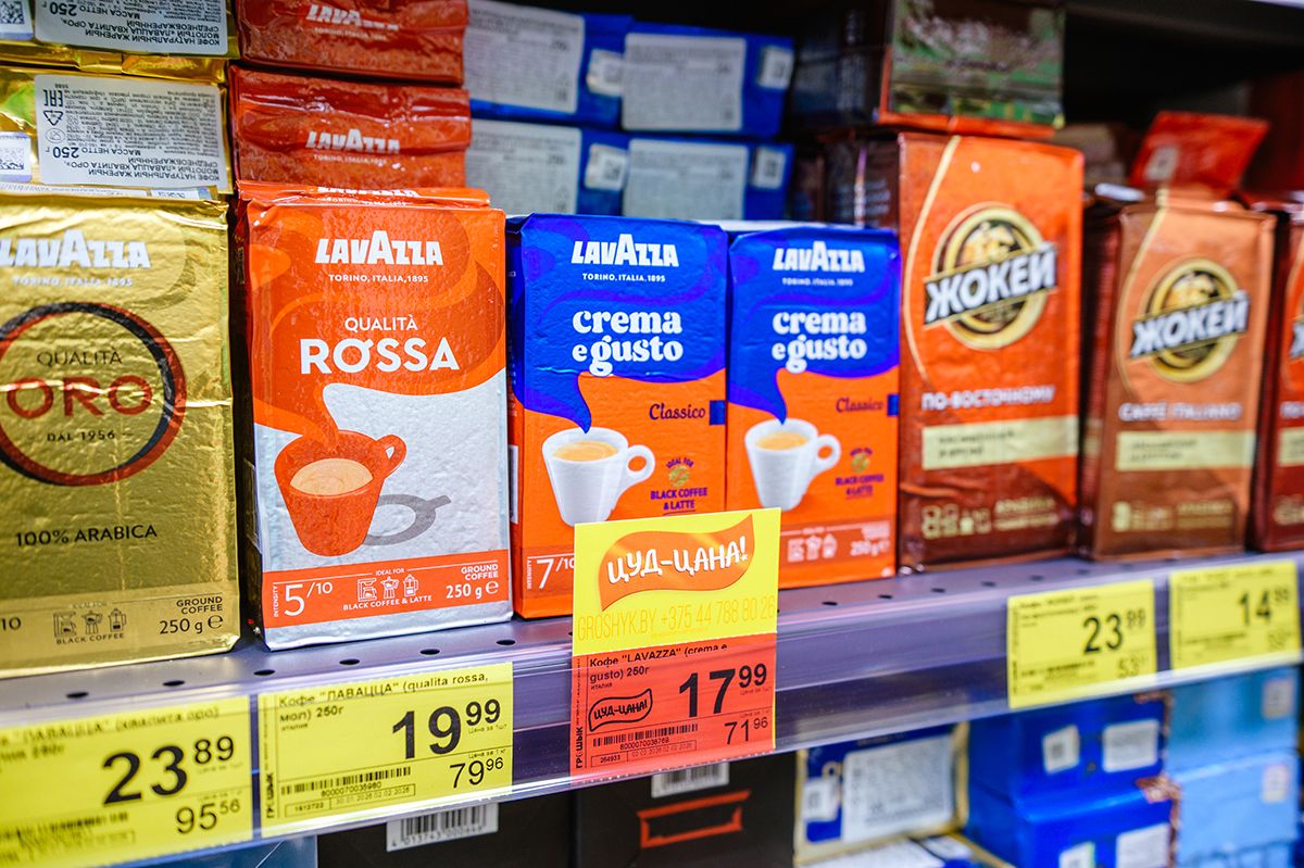 - Кофе молотый Lavazza — 17,99 рубля за 250 грамм;