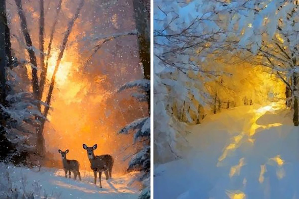 На этих выходных в студии «Мольберт» будут рисовать две картины на выбор: оленят в заснеженном лесу и зимний пейзаж. Выбирайте сюжет и регистрируйтесь.