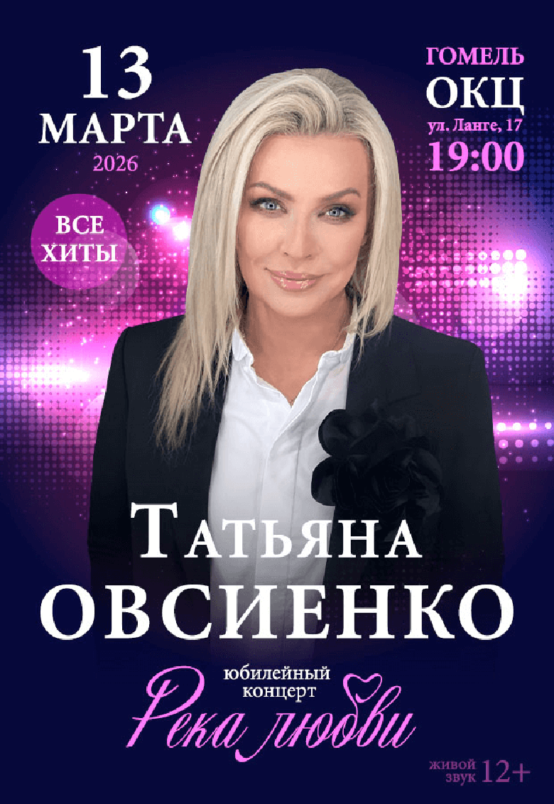 Поклонников творчества Татьяны Овсиенко приглашают в ОКЦ (ул. Ланге, 17) к 19:00. Стоимость билетов варьируется в диапазоне 80-155 BYN.