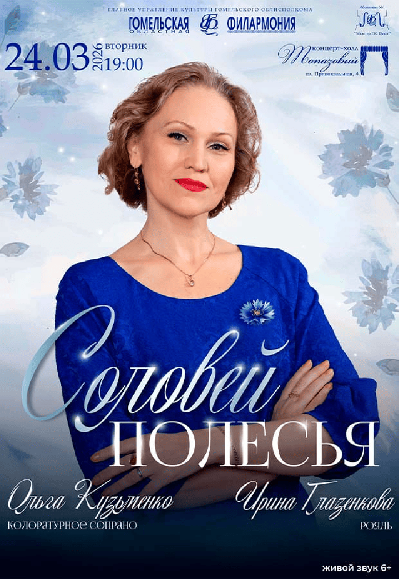 В преддверии Дня единения народов Беларуси и России областная филармония представит особенный музыкальный вечер. На сцену топазового концерт-холла (пл. Привокзальная, 4) выйдет обладательница редчайшего голоса – единственного в Беларуси колоратурного сопрано – Ольга Кузьменко с программой «Соловей Полесья».