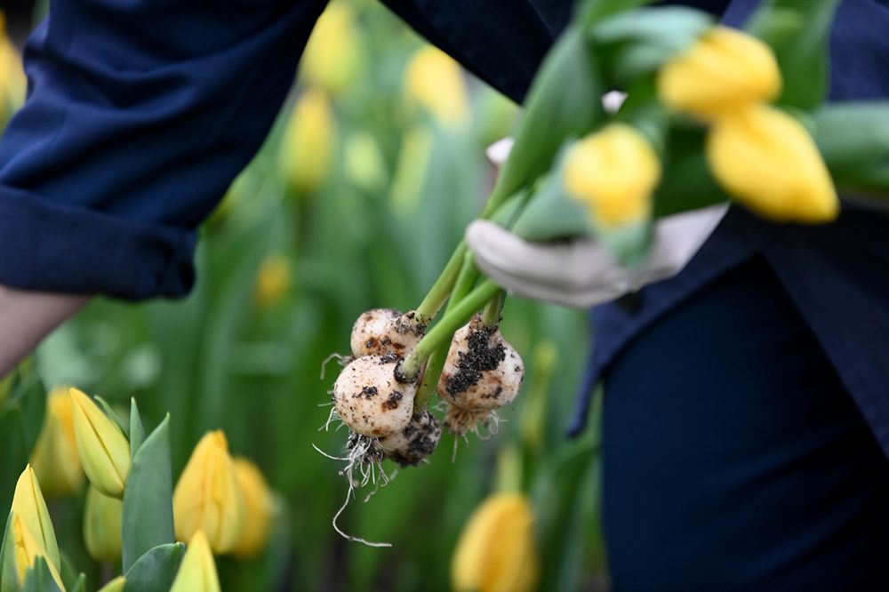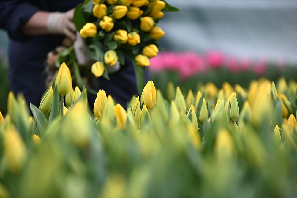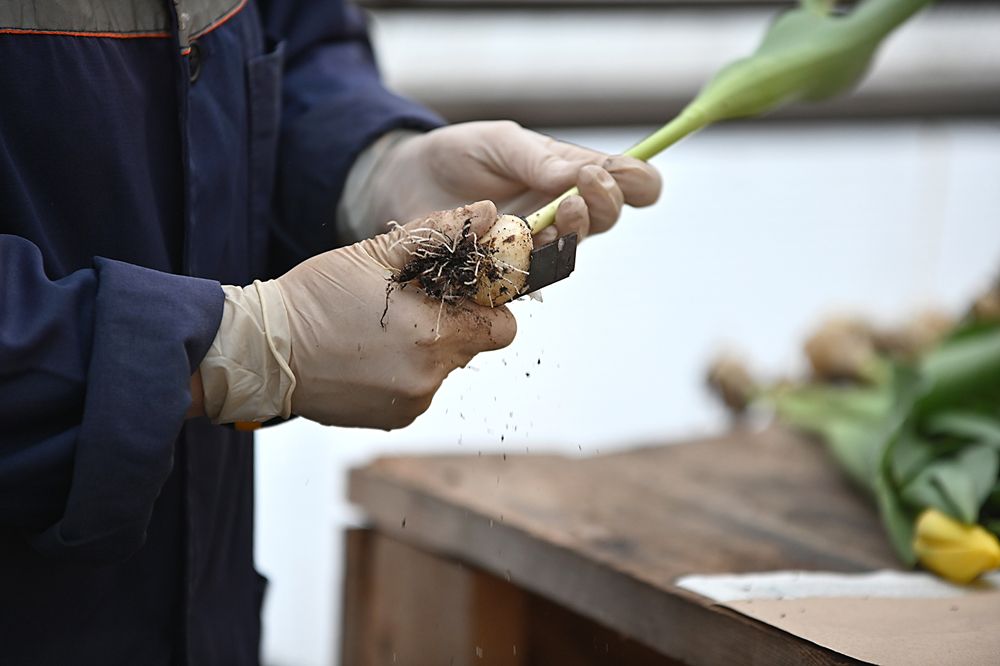 «После срезки слегка недозрелых тюльпанов мы сразу же отправляем их в холодильную камеру, где при температуре 2-3 °C они и хранятся. Для оптовых покупателей — в пачках по 30 штук, для розничной продажи — в сформированных букетах по 5-7 штук», — уточняет наша собеседница.