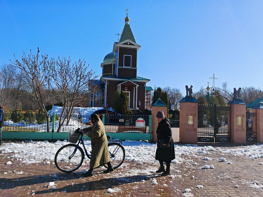 За зиму вокруг храма, стоящего на возвышенности, скопилось много снега. Когда потеплело, он подтаял и превратился в ледяные глыбы, разбить которые не так просто. На субботнике воспитанники гомельского филиала Университета гражданской защиты МЧС взяли на себя именно эту работу.