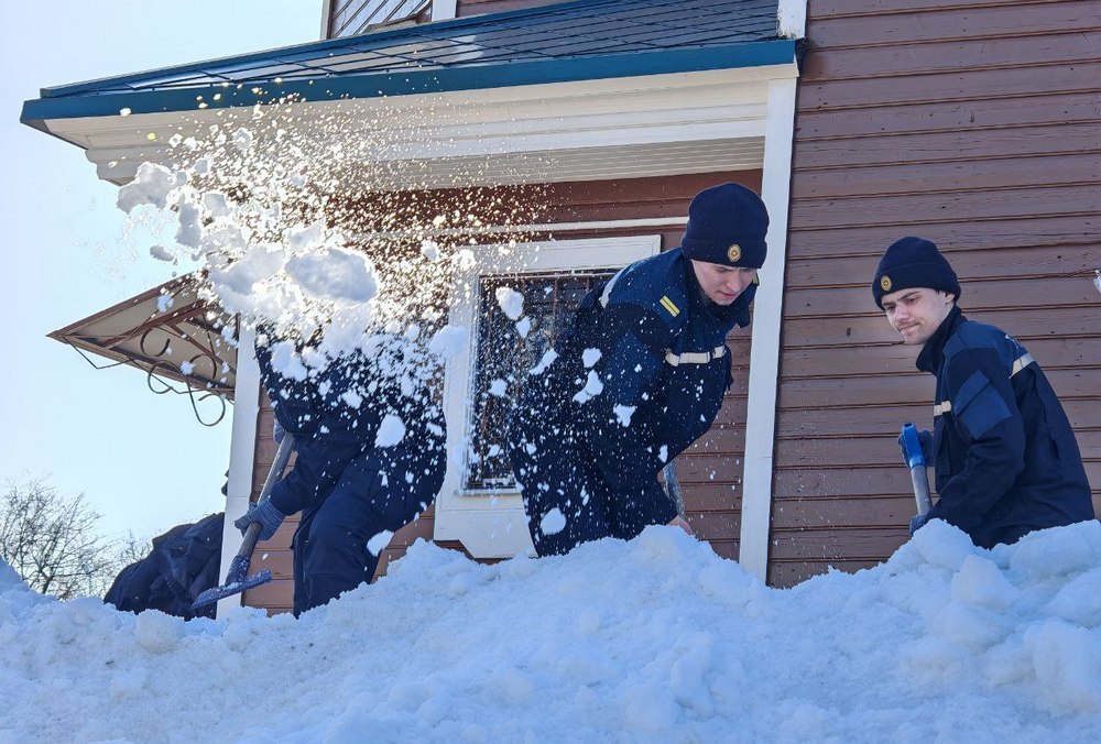 «Важно убрать снег с теневой стороны церкви, где самостоятельно он ещё долго не сможет растаять, – объясняет старший преподаватель Павел Старовойтов. – Сегодня на территории храма работают 23 наших слушателя. Но мы тесно взаимодействуем. Если нужно решить какие-то вопросы, мы с удовольствием это делаем в любое время».
