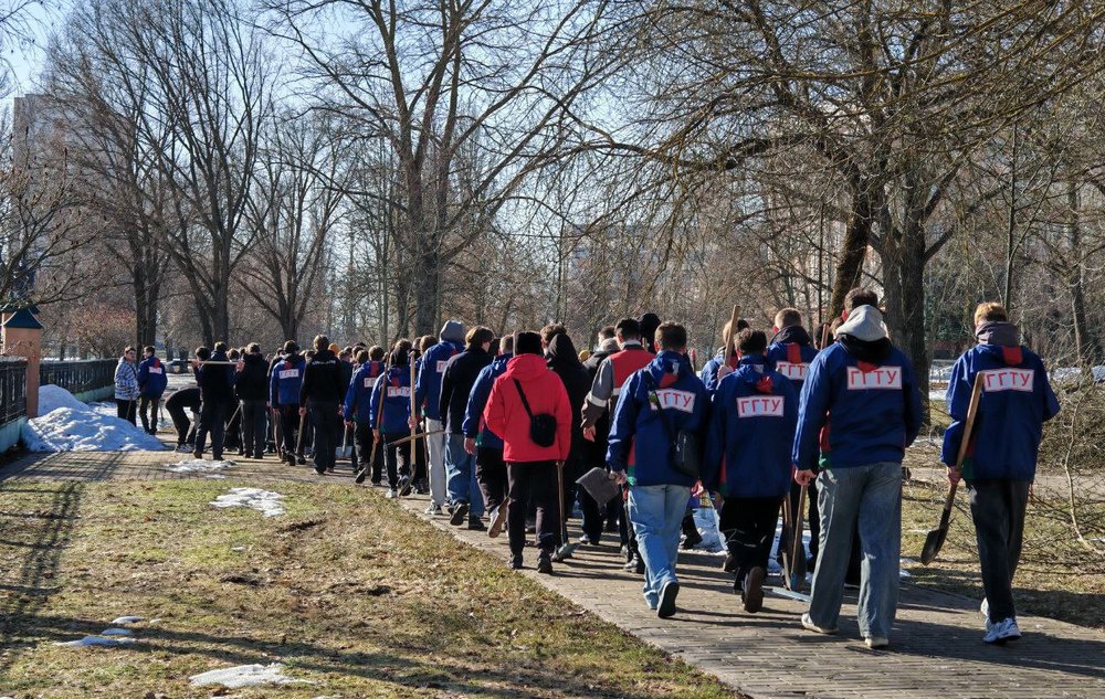 Скопившийся за зиму снег и бурелом в парке Фестивальном убирали студенты вузов и работники районной администрации. Местные жители пришли на субботник семьями. Грабли выдали даже детям, и они охотно помогали взрослым. Спонсорами рабочего настроения стали солнце и хорошая погода. Подробности – в репортаже «Белки».