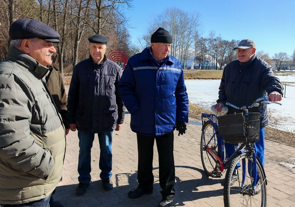За рабочей суетой одобрительно наблюдают местные пенсионеры, в парк они пришли подышать свежим воздухом. С журналистами пообщаться мужчины не против. У них есть несколько просьб к местным властям.