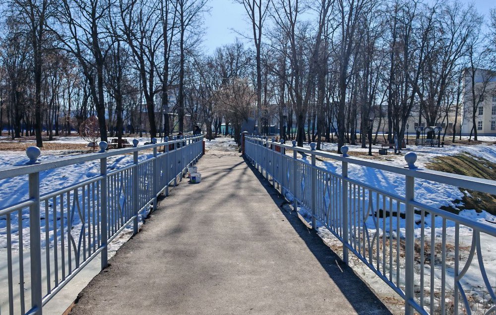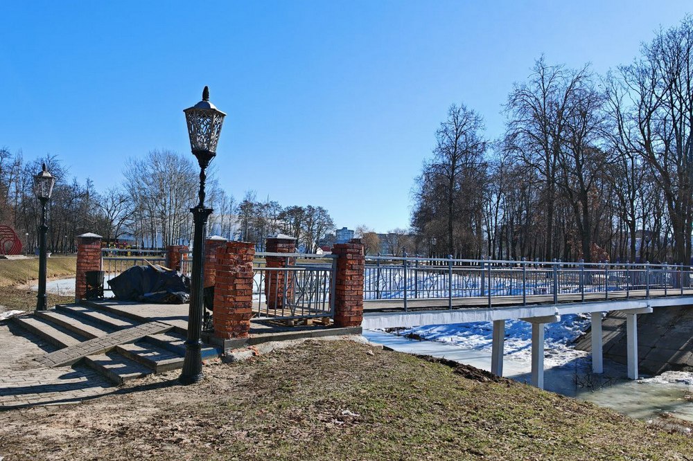 Благоустройство в парке Фестивальном не ограничится лишь субботником. Совсем скоро преобразится пешеходный мостик через пруд. Обновлены опоры и пролёты, бордюрные ограждения. Кирпичные столбики частично разрушились, поэтому их разберут и построят новые. Выполняет эти работы ОАО «Гомельремстрой».