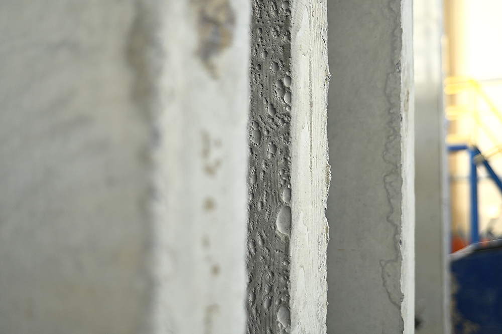 «У наружно-стеновых панелей образца 80-х сложная конфигурация – они трёхслойные, с утеплителем внутри, имеют много проёмов и вырезов. У них своя специфика связи несущих слоёв. В существующей типовой серии мы давно ушли от этого», – рассказал заместитель гендиректора Гомельского ДСК по производству – директор завода КПД Роман Ивашкевич.
