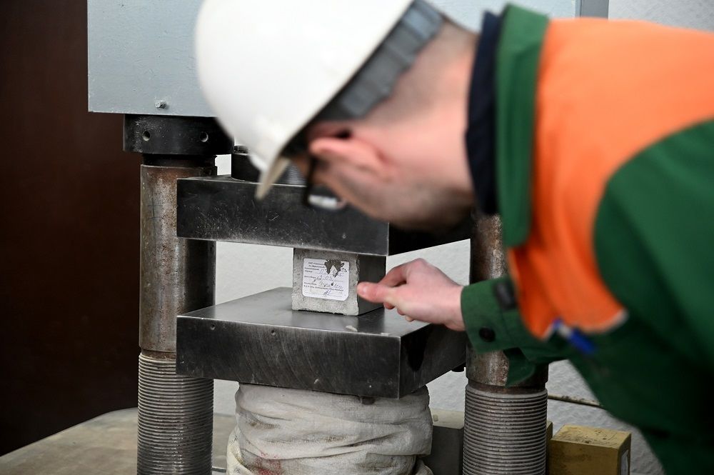 Самую важную проверку на прочность образцы проходят в Минске – в Белорусском научно-исследовательском институте строительства.