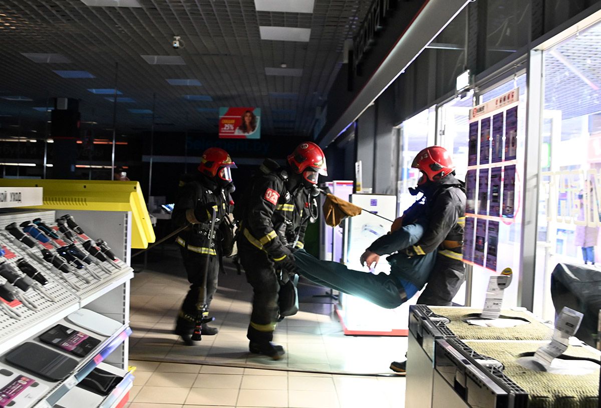 Повсюду дым, на крыше пострадавший: в ТЦ Гомеля прошли учения