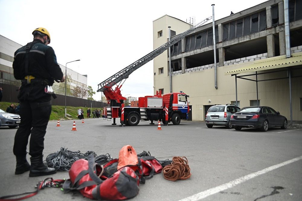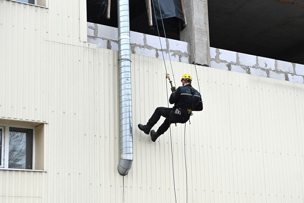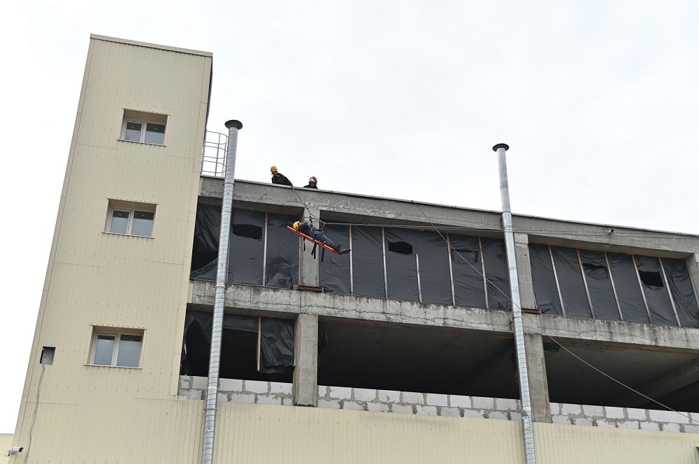 «Параллельно на номер 101 поступило второе сообщение. По тактическому замыслу, рабочий ремонтировал кровлю здания, потерял сознание, упал и сломал позвоночник. С травмой покинуть ТЦ он не может. Для его эвакуации задействовали спасателей-альпинистов», — описал контекст Игорь Рыжов.